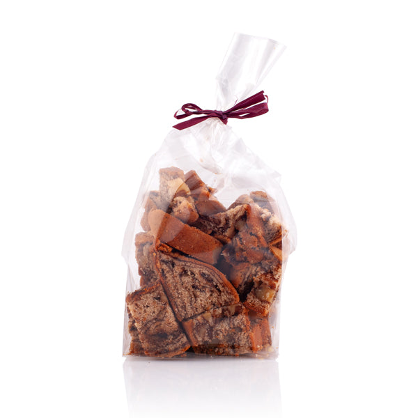 ZLOŽENIE: múka (pšeničná, ražná), cukor, med 10%, maslo, perníkové korenie (škorica, muškátový oriešok, koriander, zázvor, fenikel, klinčeky, nové korenie, aníz, badián, čierne korenie, kardamón), vajcia, sóda bikarbóna, slivkový lekvár (slivky, glukózovo-fruktózový sirup, kyselina citrónová, pektín, škrobový sirup, sorban draselný, benzoan sodný), vlašské orechy