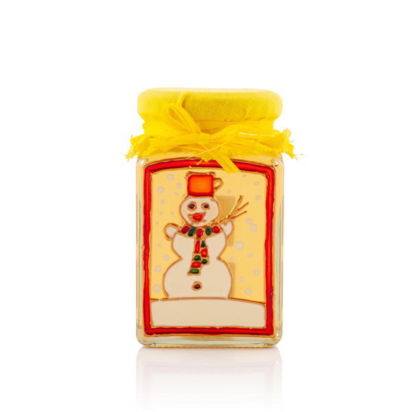 Ručne maľovaný pohár s medom snehuliak